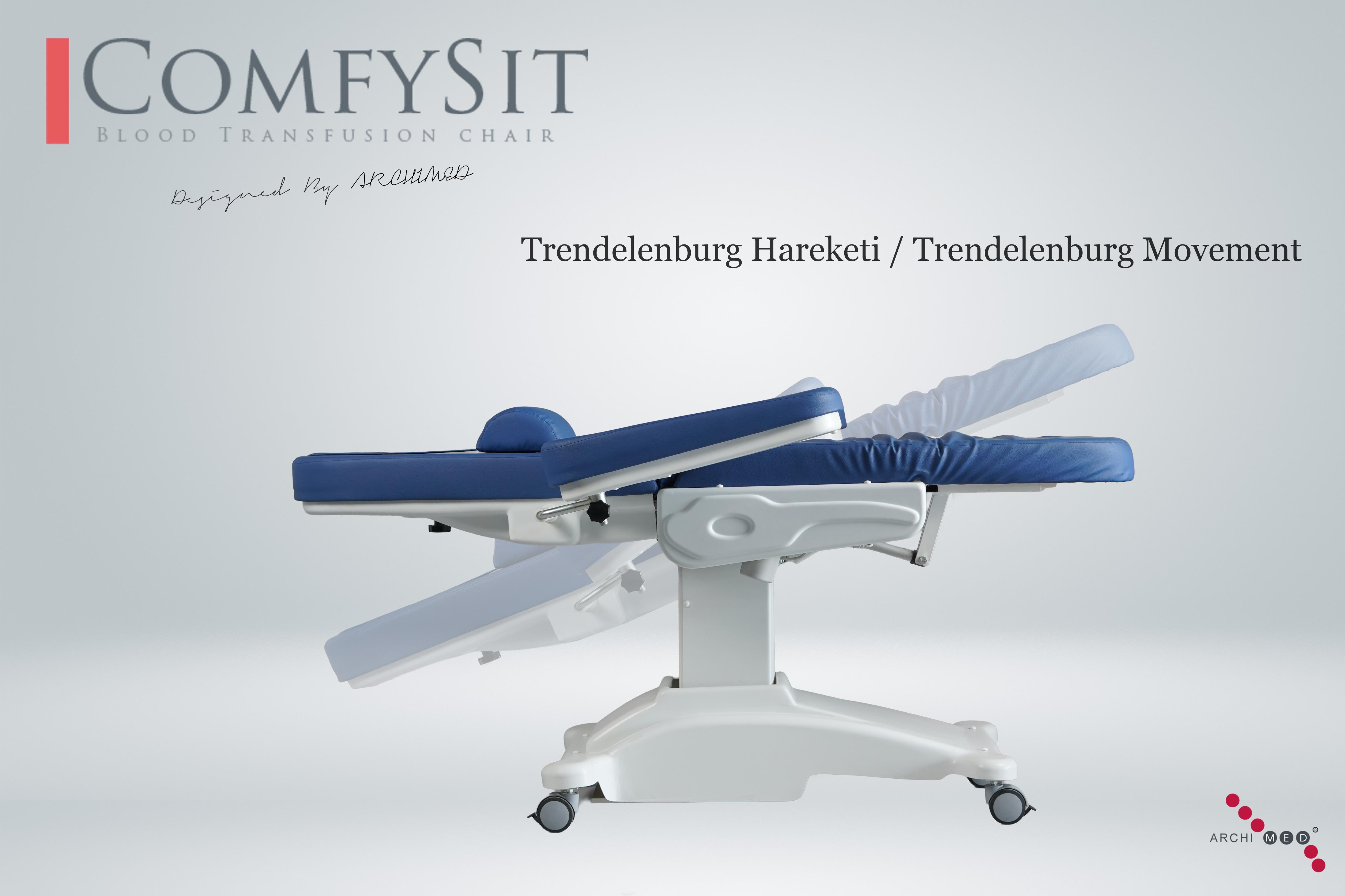 ComfySit 4 motorlu kan alma koltuğu, kan alma, cilt bakımı, vücut bakımı, epilasyon, saç ekimi ve diğer medikal estetik operasyonların yapılabileceği şekilde tasarlanmıştır. Kan alma koltuğu, sırt, oturak ve ayak kısmı olmak üzere 3 ana parçadan oluşmaktadır. El kumandası ile komut verilen 4 Adet DC motor ile sırt aşağı/yukarı, yükseklik ayarı, ayak parçası aşağı/yukarı ve trendelenburg/ters trendelenburg hareketlerini yapabilme kabiliyetine sahiptir. Koltuk özel bir yataklama sistemi ile dikey olarak yükselebilmekte, bu nedenle koltuk yükselirken herhangi bir pozisyon değişikliği olmamaktadır. Koltuk leke bırakmadan silinebilen, sıvı emmeyen materyalle kaplı, rahat, ortopediktir. Minderleri uygun sertlikte, döşemeleri kolay temizlenebilir sıhhî özellikte, uzun oturumlarda terleme ve kaşıntıya sebep olmayan, kolay yanmayacak özellikte suni deriden yapılmıştır. Ayak ve oturak kısmı tek parça döşemeden oluşmaktadır. Koltuk dışındaki abs kaplamalar döşemenin içinde kalacak şekilde dizayn edilmiş olup ve döşeme ve plastik arasına kir vs girmesine engel olmaktadır. Kol kısımları aşağı, yukarı, sağa ve sola istenilen yönde ayarlanabilmektedir, koltuğun sırt kısmının hareketleri ile doğru oranda hareket ederek yere olan paralelliğini bozmamaktadır. ComfySit kan alma koltuğu, kan alma, hemodiyaliz, göz operasyonları, onkoloji, kemoterapi, rehabilitasyon, ozon tedavi, muayene ve ufak cerrahi operasyonların ile tedavi işlemlerinde kullanılabilmektedir. 4 adet kilitlenebilir tekerler sayesinde istenilen yerde sabitlenebilmektedir. Çelik konstrüksiyon galveniz kaplama ve elektrostatik toz boya ile korozyona karşı korumaya alınmış ve tamamı anti-bakteriyel özelliğe sahip kolay temizlenebilir ABS plastiklerle kapatılmıştır. Böylece çok şık bir görünüme ve sağlamlığa sahiptir.